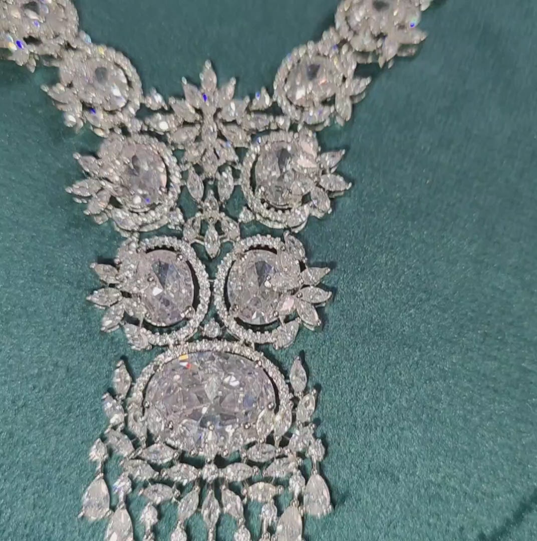 This AAA Quality American Diamond Necklace with Earrings exudes premium quality with its stunning craftsmanship and sparkling American diamonds. Made with the highest standards, this necklace and earring set adds a touch of elegance and sophistication to any outfit. Treat yourself to luxury with this exquisite jewelry piece.