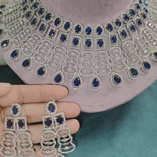Blue American Diamond Chokar Necklace with Earrings