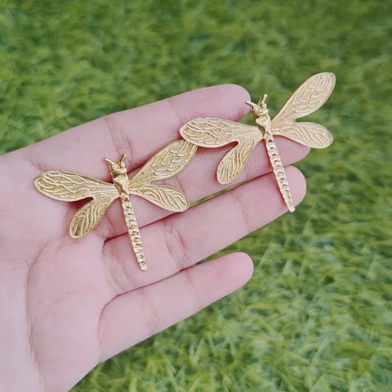 Introducing the Dragon Fly Golden Brass Studs Earrings, crafted with precision and elegance. Made of durable brass material, these earrings feature a stunning dragonfly design and a beautiful golden color. Perfect for adding a touch of sophistication to any outfit.