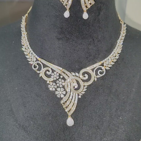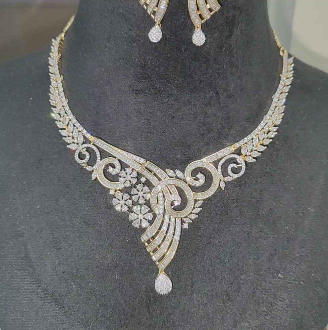 Premium Golden Polish American Diamond Necklace with Earrings