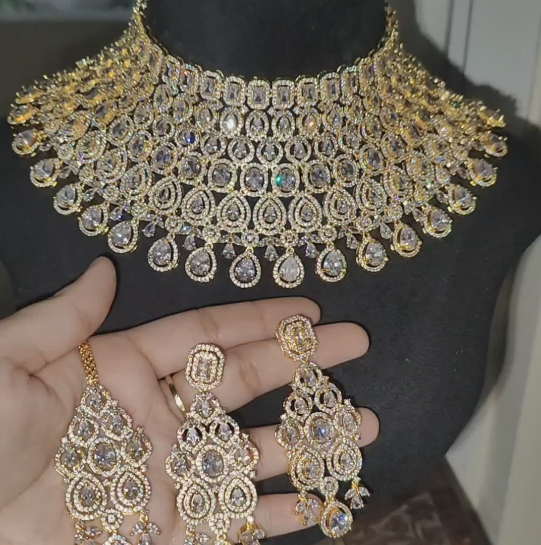 Ritta's Collections, Premium Golden Polish Bridal Chokar with Earrings and Maangtikka, Swipe for video